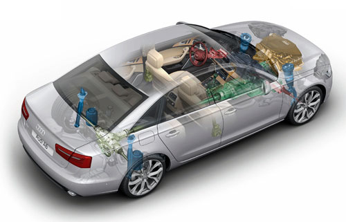 Propio de los Audi, este A6 resulta sumamente fácil de llevar incluso a un ritmo rápido, convirtiendo al conductor en un as del volante. Las sofisticadas suspensiones y la dirección electromecánica contribuyen a ello. Pese a sus dimensiones y su peso, las curvas rápidas no se le resisten y las lentas las supera con suficiente entereza. Gracias al Audi Drive Select (abajo, ver Audi Drive Select), se puede variar la puesta a punto del chasis. El modo más confortable no convierte el A6 en un coche torpe, mientras que la más deportiva no lo transforma en incómodo. Fantástico, pues.