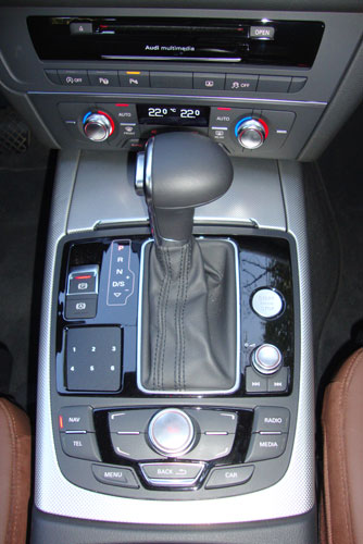 MANDOS PARA MEMORIZAR. Alrededor de la palanca del cambio se agrupan muchos mandos, que están agrupados de forma inteligente pero que, a su vez, es necesario un tiempo para memorizar su ubicación. Al principio, desviaremos demasiado la mirada de la carretera para pulsar el que queremos. En esta extensión de la consola central se encuentran, además del mando central MMI, los del equipo de audio, navegador, teléfono, Audi Drive Select, freno de mano eléctrico, etc.