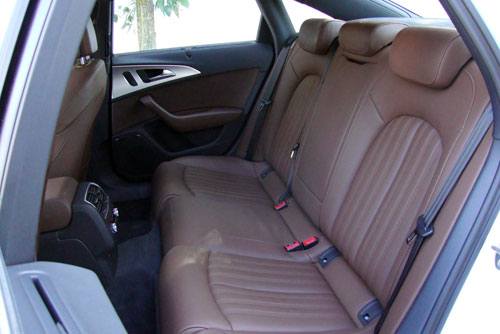 BIEN PARA DOS. Teniendo en cuenta los casi cinco metros de longitud del A6, el espacio disponible para los pasajeros traseros no es tan amplio como el que cabría esperar. En el Skoda Superb, por ejemplo, hay más sitio. No obstante, dos adultos de talla media viajan sobrados aun siendo altos los pasajeros delanteros. La quinta plaza no es cómoda por el voluminoso túnel de transmisión y el respaldo que aloja un reposabrazos.