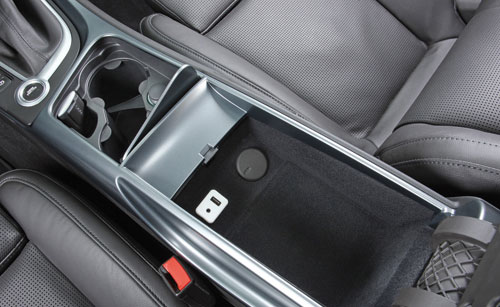 PRÁCTICO. Gracias a la desaparición de la palanca del freno de mano, entre los dos asientos delanteros se encuentran dos grandes huecos portaobjetos donde dejar todos nuestros ‘trastos’. Dentro de la guantera central, se esconde la conexión auxiliar del equipo de audio.