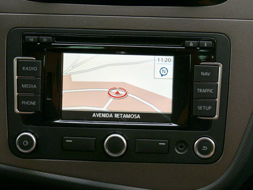 GPS TÁCTIL Y A COLOR. Por 841 euros, se encuentra disponible el GPS Seat Media System 2.2 con radiodifusión de audio digital y pantalla táctil. Cuando está activado, las indicaciones también se muestran en el display de la instrumentación. Lo más criticable es su posición en la parte inferior de la consola central, porque hay que desviar demasiado la mirada del tráfico para ver la propia pantalla.