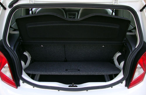 BUEN ESPACIO. Teniendo en cuenta que el Mii apenas mide 3,5 metros de longitud, es un buen dato disponer de un maletero con 238 litros. El pequeño portón deja un hueco suficiente para meter el equipaje con facilidad. El cubículo tiene doble piso, de tal forma que si se abaten los asientos traseros puede quedar una superficie de carga totalmente plana.